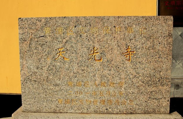 天光寺,建于唐朝天佑年间,位于练塘镇东1公里处新朱枫公路的交叉口。寺院为三进式寺院,进山门依次为天王殿、大雄宝殿、后殿,总占地6660平方米,建筑面积共885平方米,其中:天王殿124平方米,大雄宝殿174平方米,其他殿房267平方米,辅助用房320平方米。天王殿前立着沈陈碑记。2000年恢复开放。