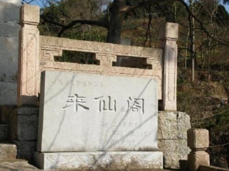 来仙阁山门两侧有楹联:“笛韵抑扬晴后蚓,琴音断续晚来蝉”,至今已挂近二百年。此对联已选入《贵州省志·名胜志》和《贵阳名胜楹联选》。这副对联通俗易晓,但不被人们注意,游览来仙阁的人,一般踏石级而上,闻桂花香,观树阴照水,听南明河的旋涡声。进入山门后,首先看到“来仙阁”匾,两侧墙壁以蓝色碎瓷镶成“天高地迥,岳峙渊亭”八个大字。
