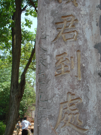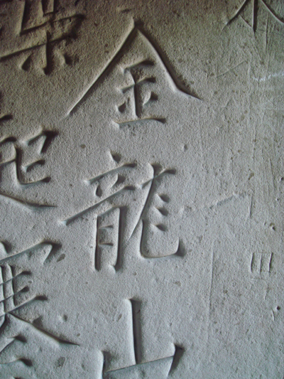 赵文肃公以翰林乞假家居,遍游山水,留题颇多,古字、白云、般若诸山石刻存焉。此碑[残留金龙]山禅院,历年已久,字将湮没。道光丁未冬重修,始置于此。桂溪里人李象乾谨识。