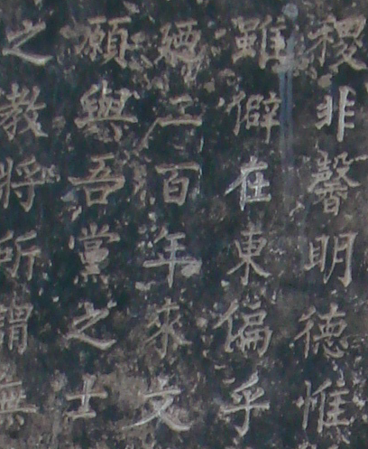 许立中按:此碑共缺5字,其中,赵贞吉诗正文缺一字,李象乾跋文缺4字,均在碑脚。有人误认此碑是清代复制品,是因为看到李象乾跋文有“道光丁未重修”字样。其实,道光丁未重修的是文庙,李象乾在此没有交代完整(参见碑1和碑4正文首句里的“丁未”)。其次,碑刻上的字是不能修复的;即使要修理赵贞吉这块诗碑,也没有“重修”的说法。再次,如果修复了,为何正文“火”前仍缺一字?最后,根据诗句里“春烧绿”有“绿遍”的意思,姑且补以“残”字反衬之。