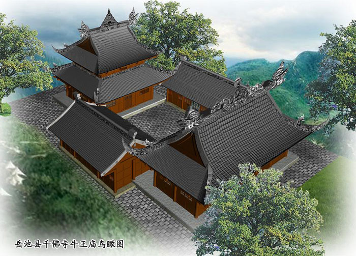 一九九三年四月三十日,牛王庙被岳池县人民政府公布为第三批县级文物保护单位。二000年至二00二年,因牛王庙年久失修,为安全起见小学和敬老院先后撤离,牛王庙被废弃在宝兴山上经历风雨残蚀,几乎当然无存。至到二00四年十一月三日,岳池县人民政府副县长贺宗飞组织县委统战部、县文体局、民宗局、北城乡政府负责人在千佛寺上院召开现场办公会,会议决定将龙德寺(牛王庙)移交千佛寺管委会维修、管理、使用。二00五年六月十七日,正式办理了移交手续。千佛寺管理委员会接管后并于同年八月由崇扬住持组织信众捐积功德款启建维修,经过住持崇扬法师的发菩提心感动了佛菩萨终于在二00六年二月竣工并使用。