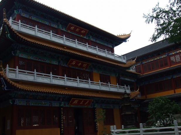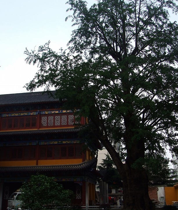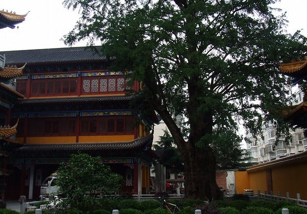 福泉寺,座落于上海市南汇区惠南镇文体路,建于元至正二年(1342),比南汇城早44年,初名“甘霖院”,建有大殿及两厢,殿后偏东有“福泉井”,早于寺开凿,故改名为福泉寺。寺内有明代隆庆五年铸造的古钟一座,重1600公斤,高1.6公尺,周3.4公尺,造型优美独特,钟口呈喇叭花瓣形。钟声铸有阳文图案和铭文,并铸有祈词:“金声一震,虎啸龙呤,皇风清穆,海道安宁”。被视为镇寺之宝。殿前有古银杏一株,相传植于南宋淳佑年间,树龄约750余年,是上海市第二古树,它是南汇城陆的见证。树高18米,树围6.5米,树杆挺拨,绿荫如盖,虽几经时代沧桑,仍杆枝繁茂,每年结果累累。古寺、古钟、古树已相伴近千年,结下了不解之缘。“文革”时期,福泉寺的宗教活动被迫停止,寺院成了厂房,寺内钟架被毁,古钟弃诸庭院,日晒雨淋,任人敲击。1981年又以“古钟”命名,建立了公园,特大钟置于亭内,不仅如此,庙场也被占用,建造了体育馆。从此寺、树相隔,使古银杏成了体育馆内的景观。