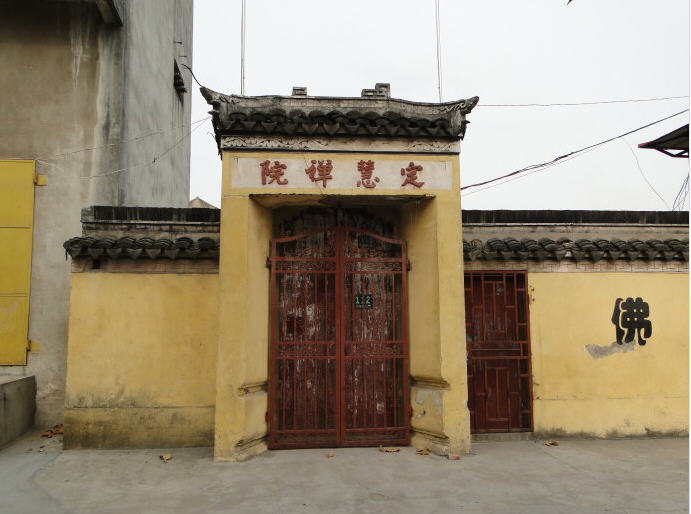 定慧庵始建于民国十年(1921),面对流经大团镇的河流干道而立,由当地信女郡莲定、盛华文等发起捐助而建。所建定慧庵时参照了南汇当时最大的比丘尼庵即泥城净心庵式样,共有房屋十余间,有大殿一座,偏殿四间,两侧厢房各三间,占地三亩左右,成为大团镇的一处宗教场所。