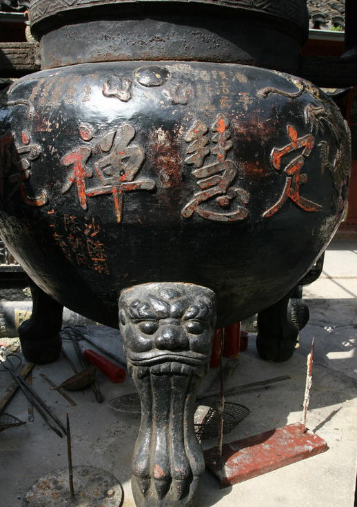目前在西配殿之北,面南而立的有一座七开间黄墙红门灰瓦三层佛殿。特别值得一提的是,该佛殿除二楼以上作为华严坛等主供佛堂以外,在其一楼另设有从小洋山迁至此地的两间殿堂:其右侧殿堂为浦东当地的民间神祗祠,即从小洋山迁建于此的羊山大帝“忠武侯王”殿;其左侧殿堂为小洋山观音阁“大三宝殿”。两处殿堂的堂匾由小洋山信众于1995年立,估计是2000年前后,浦东开发大小洋山工程时迁址复建于定慧庵内。