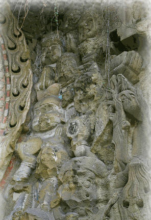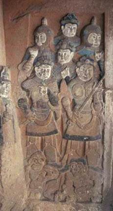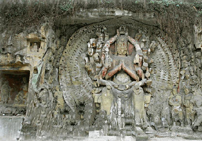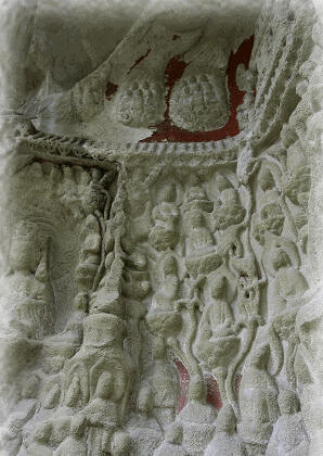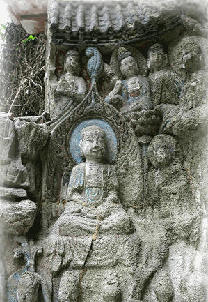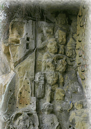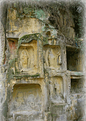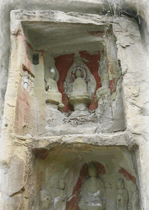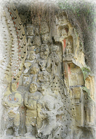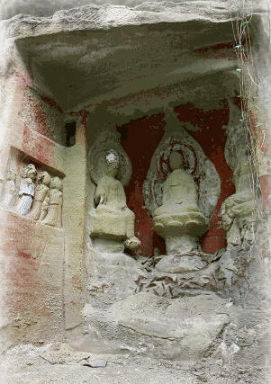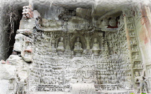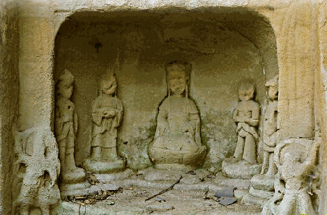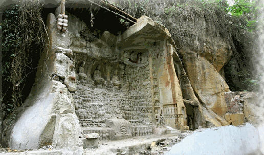 翔龙山摩崖造像及石刻位于内江市中区翔龙路3号,距市中心仅800米,为内江市政府所在地。在沿翔龙山西面长206米、宽约9米高的崖壁上,现存造像61龛,计有大小造像368尊,高者达8米,小者仅数厘米,保存摩崖题刻9处。此山由明代进士、盐运史王三锡书刻:“翔龙山”而得名。