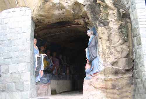 此寺始建于明代,原名铁龙寺,明清之际烧毁,清代乾隆年间加以重建修复。历来游人赞赏,留有如明大学士赵贞吉的“翠竹贮密荫,练江号长春。芝田壤飞丈,莲海程生人”;御史刘养直的“……仙坛静寂寒朝霭,法界空明带久曛。……”;“古寺凌霄野蒙蒙,半山粟叶舞秋风”等等诗句。石壁上有摩岩造像大小上百躯。山侧有会真、丹华二洞。会真洞内刻唐十二进士石像。丹华洞内的祖师像,皆真人一般大小。衣纹线条流畅,风格迥异。洞内石床、丹灶,形迹犹存。原寺庙外还残存土地庙二处,系明、清建造。颓垣断壁中,尚有石碑两座,一是清代“乾隆五十四年”(1789)的重修殿宇记;一是清 代“乾降四十九年”的“万年琉璃碑”记。记载了重修殿宇及捐资事略。