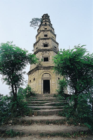 如今高寺山上最具历史价值和观赏价值的是清嘉庆十二年建成的高寺塔。塔通高33.3米,共九层,塔身为八面体结构,采用坚硬细腻的白石砌成。