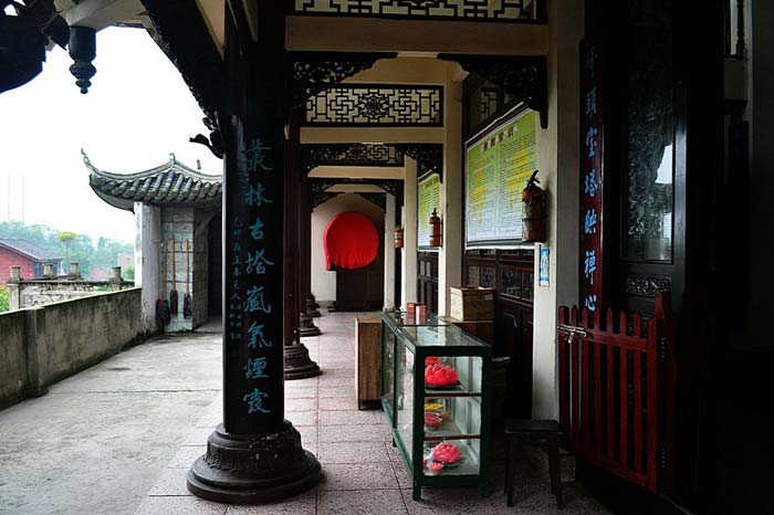 高峰寺位于小青龙河口与沱江汇合处,距内江市区东而约四公里的狮子山。始建于宋代,原名铁龙寺,嘉庆十二年间更名为高寺。寺院内高寺塔坐东向西,通高三十三点三米,九层、八面体、石结构,攒尖顶,极具镇“狮子”、锁“江龙”、兴“文运”之威仪。塔内有台阶五十又六级,可旋至五层。各层开窗,额上分别刻有:“百光天后”,“元始天尊”,“混元一气”,“西天自然”等石匾。进出处精刻二龙戏珠图案及文昌夫子楷书,外刻浸云镇山雨雄居胜地,内刻嘉庆十一年丙寅夏月吉日,来授文林郎知邑事徐丰题记。会真洞内刻唐十二进士石像,丹华洞内有石床,丹灶及石刻真人像,造迹犹存。
