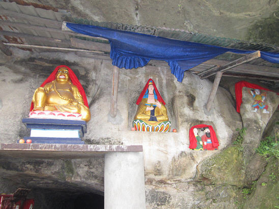 位于大驿坝的木崖寺,是明末清初修建的名寺,至今已有几百年历史,泸州晚报报道,游状观的沱三桥、幽静的木崖公园后,不要忘游历史久远的木崖寺。今天慕名初游,只见此寺坐落在沱江边的石崖中,崖中塑立着各式各样的大小菩萨,虽多次惨遭破坏,但至今仍保存完好。今天虽不是菩萨节,但仍有不少人前来烧香祈福。这临江靠山、风景秀丽的祈福之地,给我留下了难忘的印象。