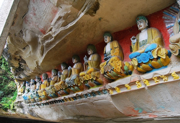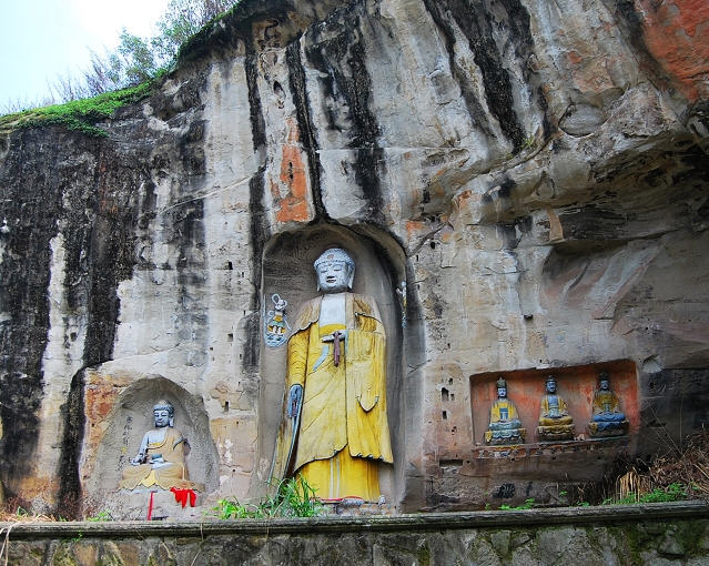 寺外还改建了灵芝崖,亮出了原来的造像、石刻。