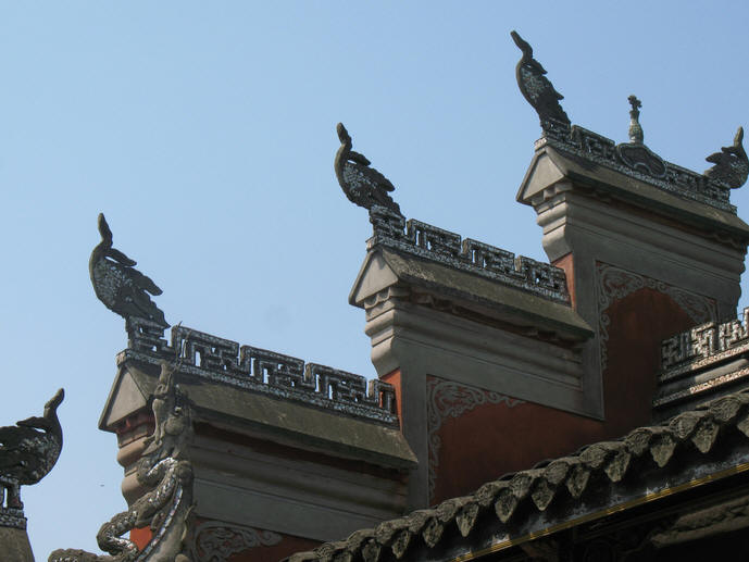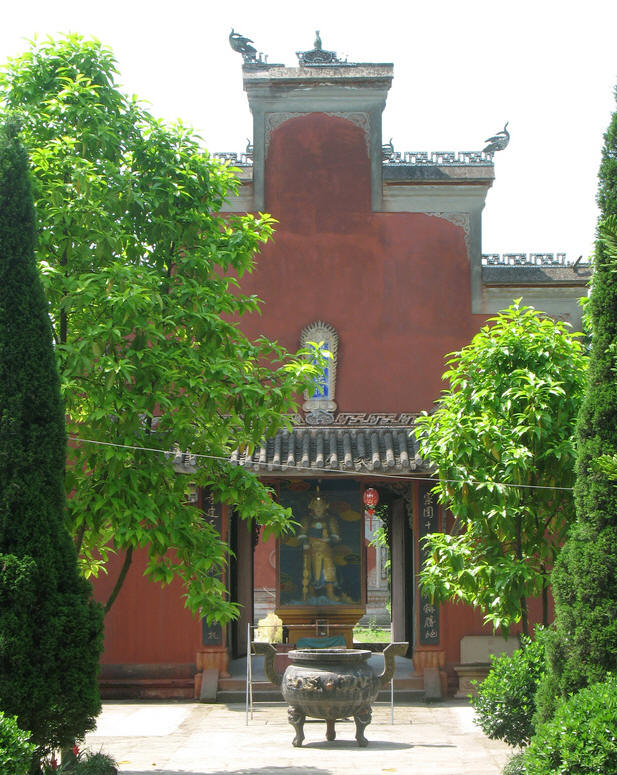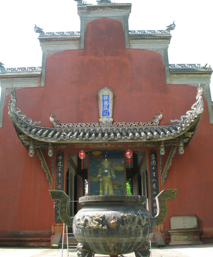 寺庙东边是金碧辉煌的观音殿,塑大慈大悲观世音菩萨像;西边是祖师殿,塑有地藏王菩萨,济公和尚、丈雪祖师像。