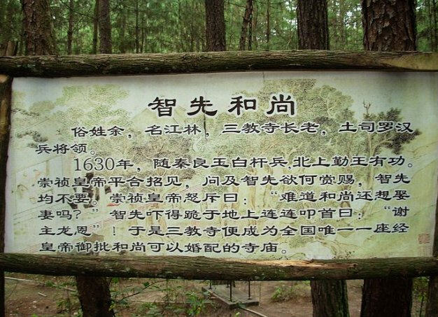 三教寺是全世界集儒、佛、道三教于一体唯一的寺庙,故名.也是唯一一座经皇帝御批和尚可以婚配的寺庙。