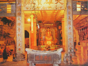 华严洞妙法禅寺原名崇仁里,位于安顺市城南三公里外的读书山下,明嘉靖年间由上覆下源老和尚创建,昔日老和尚于华严洞前持诵《大方广佛华严经》(简称华严经)四十九天,感动龙天,诸佛菩萨感应,因而得到了众善信的护持,创立寺院,弘化一方,普度众生,此因缘由《华严经》而起,故崇仁里改名为“华严洞”。明末、清代、民国时期,均有讲经说法的大德法师驻锡此地弘扬佛法, 清末安顺知府曾为华严洞题写“飞岩”, 民国政府贵州省主席杨森为华严洞题写“天地妙蕴”、“幽邃”等匾额词句,为禅院增添了一定的文化底蕴。近代高僧昌明法师主持本寺数载,弘法度众,黔中各地信众受益者数以万计,佛法在此间曾大兴一时。