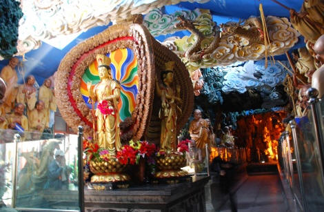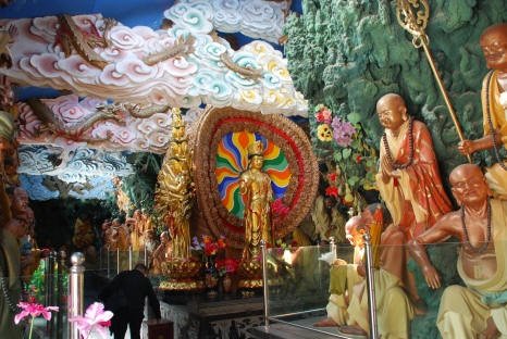 高庙是一座三教合一的寺庙,很奇特。庙的砖雕牌坊上有一副对联:“儒释道之度我度他皆从这里”;“天地人之自造自化尽在此间”。横批是:“无上法桥”。庙里供奉不仅有佛、菩萨,还有玉皇、圣母、文昌、关公。佛、道、儒三教的偶像,济济一堂。