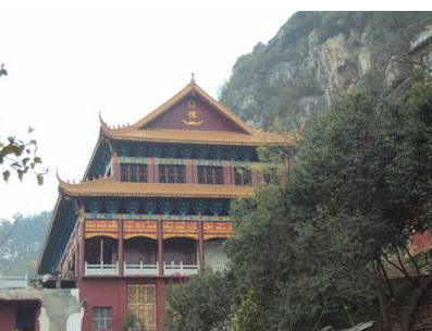 要去回龙寺,需从径两旁的树荫下穿过,沿阶梯一步步往上登去。一路上,可充分体会到铜仁进士万士英所描写的“岩崖高阁倚云端,削壁嶙峋路几盘;故木四时行客荫,奔涛六月逼人寒”的氛围。