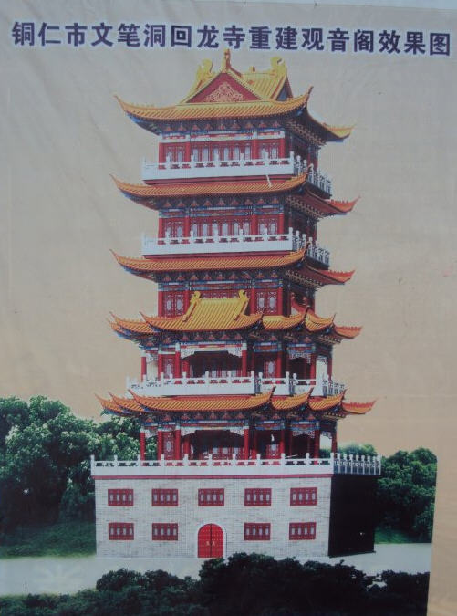 铜仁文笔洞回龙寺始建于明万历四十年(1612年),当时有亭台楼阁、殿堂梵宇,是名闻川、渝、湘、黔、滇的佛教圣地,也是铜仁的一大风景名胜地。后寺庙多次毁于战乱、火灾,又数度恢复、重建。长期以来,文笔洞内供奉着汉白玉观世音圣像,十方信众闻讯前来朝拜,祈求大慈大悲救苦救难的观世音菩萨降魔除障、消灾解难。久而久之,回龙寺具有广大灵感的观世音菩萨几乎家喻户晓,人人皆知,平日里香火不断,逢三大节日(每年农历二月十九、六月十九、九月十九)时,前来朝拜观音菩萨的善男信女更是络绎不绝,川流不息。
