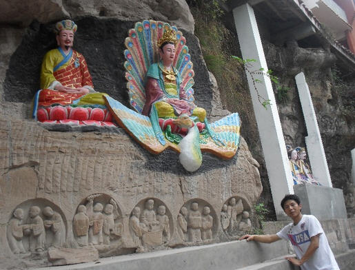 “为什么卧佛只有上半身呢?”带路的僧人介绍说,这正是石刻大师独具匠心之处,只刻出佛的上半身,至膝部即刻出云纹并施彩绘,将膝以下的肢体部分,隐没崖内,造成“意隐云霞落山崖”的深邃意境。整个造像均摩岩凿造,构思奇巧,工艺精湛,比例匀称,线条流畅而不粗蔬;神态庄严而又和悦,慈善安详,给人以宽厚容物之感。记者由衷地感叹,“全国第一大卧佛”的确名不虚传,确实是我国石刻艺术的珍品。