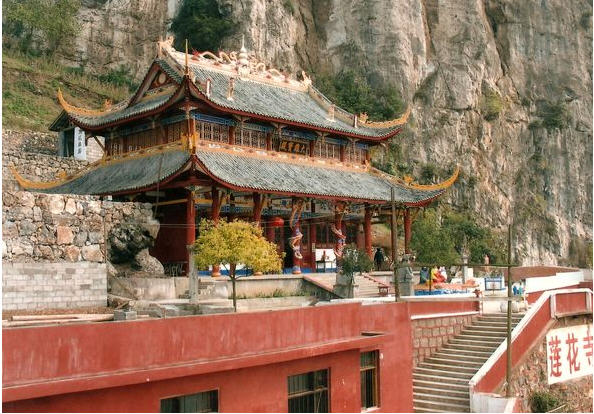 就在莲花寺周围裸罗坡有“波罗石”、猫耳坡有“猫神石”,还有“观音石”等,又有峭壁间的洞孔,好似莲花。过去民间求神保佑,故而以往这些奇山异景处朝拜、敬香、燃灯等习俗,流传至今。莲花寺的莲花洞是“观音菩萨坐的莲台”,留有当地文人在岩上刻的字迹,还有石工艺人雕刻的“莲花岩”,故而寺院名为莲花寺。寺院位于悬崖峭壁之上,高耸临空,奇峰秀丽,这些源于大自然神功造化,留下了千古传奇,堪称仙境。