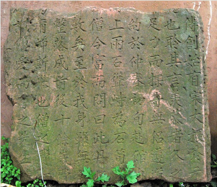 右边巨石后壁,镌刻着“禅林”二字。据说,玉蟾寺鼎盛时,前来怀古礼佛的文人雅士、富贾香客络绎不绝。南宋明丞虞允文、明代首辅杨廷和,著名文人黄庭坚、杨升庵(即杨慎),邑人余子俊兵部尚书,邑人余承勋翰林等名人仕宦,都先后在玉蟾寺的岩壁和石碑上,留下了他们触景抒怀的诗词、题咏。不知这“禅林”二字是否是他们留下的遗迹。据说,黄庭坚(晚号涪翁)与曾任青神县令的张礼是表亲,他曾因探望姑母客居青神三月,不仅为青神中岩寺玉泉岩题写了“玉泉”,还为玉蟾寺书写了“玉蟾寺”三字金匾。又据说杨升庵游玉蟾寺时看到黄庭坚题写的寺名曾咏诗写道:“我问金鏊僧,谁名玉蟾寺?题自黄涪翁,苔蚀银钩字。”
