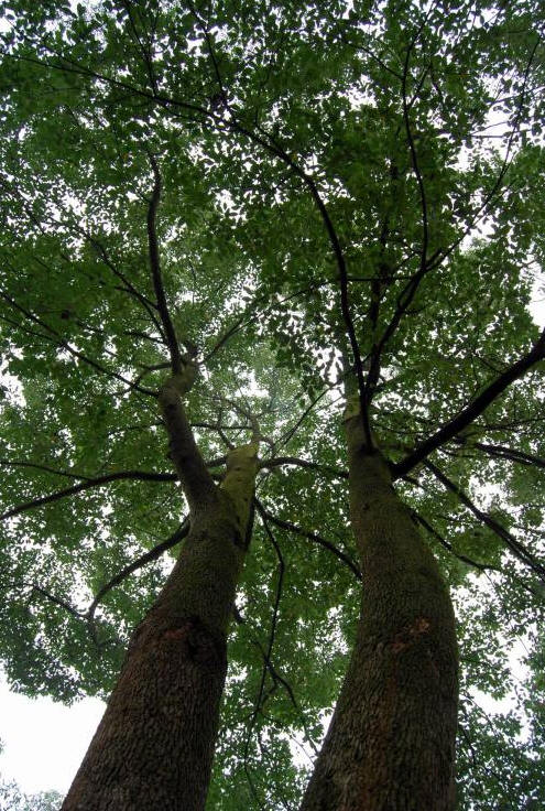 往前,一棵高大挺拔的双杈香樟树,在丛林中格外引人,这树有个充满浪漫爱情色彩的名字——恩爱树。传说,白塔山下,住着两户人家,一户姓莫,一户姓金。莫家是大户,员外莫仁生了一位貌若天仙的女儿,芳名莫英,她活泼开朗,喜欢唱歌。金家很穷,有个儿子叫金牛娃,长的眉清目秀,最善吹笛。这莫英和牛娃天天在这棵双杈香樟树下,一个吹笛,一个唱歌,笛声清脆婉转,歌声甜美悠扬,渐渐地,唱和出一曲清纯的爱情之歌。奈何门不当户不对,纯洁的爱情化做一场凄美的鸳鸯蝴蝶梦。金牛娃被追求莫英的恶少打死,可怜的莫姑娘痛心疾首,终日以泪洗面,泪水化作一潭清泉,这就是山上终年不盈不竭的“圣泉”,而这株参天大树正是他们恩爱的见证。