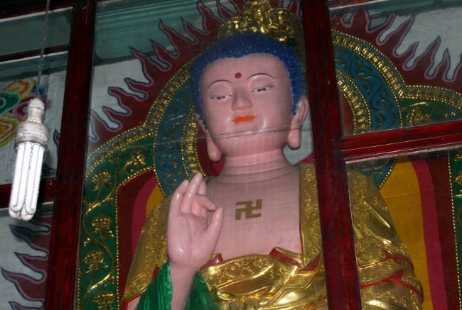 寺门之内,即是天王殿,弥勒佛和四大金刚的塑像看起来都有些气势。天王殿之后,是观音殿,再后,是大雄宝殿。大雄宝殿旁,还有西方三圣殿、诵经堂。