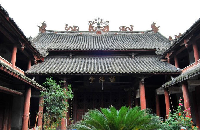 极乐寺罗汉堂,飞檐斗拱,古色古香,宏伟气派。内部构造是以罗汉阵为依据,呈“米”字形,有十六天井三十二巷道,井然有序。