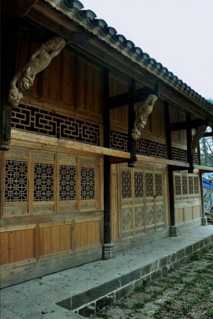 松岿寺,南向,两殿两厢,占地面积969平方米,前殿为古寺庙建筑中稀有的抬梁式七葆条前后步廊式结构,单塔悬山顶造型,因年久失修,于1983年4月20日毁于大风,殿前砌有15级石台阶,台阶中部巧妙地辟为鱼池,台阶上屹立着威武雄壮、富丽堂皇的大理石雕护门双狮,被独具匠心地用以驮住前殿明间檐柱。俗传双狮能夜间出巡,可见其雕刻技艺已达神化的地步,双狮于1966年“文化大革命”中被砸损头部,现犹如咧嘴呻吟、呼救、控诉。两厢后檐柱两块穿插坊支撑术为造型怪异的独角兽,每一条纹路,一片鳞甲,均精雕细刻,一丝不苟,后殿亦为古建筑中罕见的抬梁式七挂条前后步廊式楼房结构,重檐歇山顶造型,抬梁支撑枋,没有采用传统的瓜柱,而用精雕的枋木作穿斗构件,巧妙地将艺术与功能融为一体,充分显示了古老建筑的艺术魅力,具有历史、艺术和研究价值。雍正年间,去贵总督高其倬有诗赞曰: