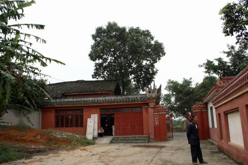 西出眉山市彭山县县城,一条水泥路通往距县城约8公里的谢家镇天庙村,这里有一座法王寺。