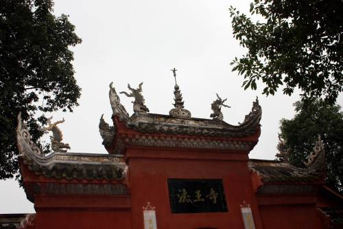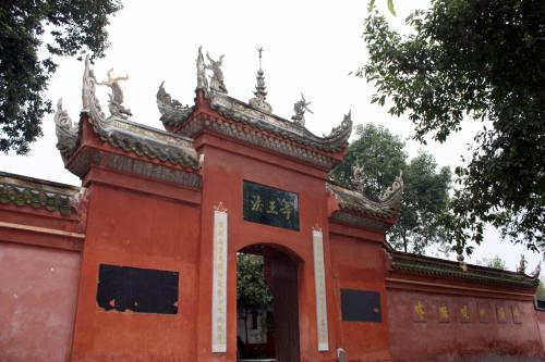 据介绍,法王寺始建于明代中期,清乾隆三十六年(1771),应昭僧募资重建。嘉庆十二年(1807),寺门外建照壁,上饰仙人走兽。道光二十五年(1845),正殿再度重修至今。民国时期至1983年,部份房舍曾作小学。1984年彭山县人民政府公布为县级文物保护单位,1985年宗教政策落实后,法王寺成为彭山县第一座开放寺院,恢复宗教活动。1986年公布为乐山市市级文物保护单位,2001年公布为眉山市市级文物保护单位。今寺庙占地约6944平方米,建筑面积1353平方米,木结构三重四合院式群体布局,坐东向西,有前殿、厢殿、正殿、后殿及僧舍。这是古色古香的寺外照壁。