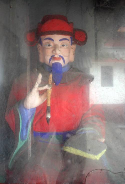 兜率宫阶檐上,左边好象是黄眉大王,右边塑一判官。