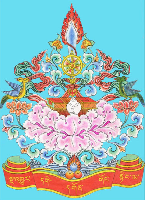 正如金刚持教法广为弘传有众多法嗣传承,雪域藏地有四大河流之教法传承,其修法传承分为八大车,邬坚第二佛陀开创了旧译密乘教法。具体而言,蜿蜒曲折的达垄河畔,羌塘之东噶琼果贡玛地方声名遐迩,其地具八吉祥,处右旋白螺相之中央,上部呈孔雀羽伞盖,下部显莲花座,前面鲜花锦簇如花园八功德之河连绵不断,如此具自然五吉相。东方如日月明灯,南方为旃枟树之薰香,西方有连绵雪山之供食,北方碧绿澜沧江之圣水,上有青龙动听的鸣声,如此圣地具自然五胜相,大地圆润丰沛百花争艳。