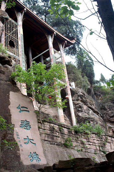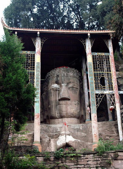 乐山大佛是海通带领工匠始凿于唐开元初年(公元713年),正好是仁寿大佛建成6年之后。也许是他将仁寿大佛建成取得了镌刻经验,又到各地考察,选到了乐山的理想地址和石质,再将图样放大,设计出乐山大佛。两尊造像均为弥勒佛,外貌清晰,面型丰满,嘴微闭,目微启,眉似弯月,慈眉善目,平视东方,神态安详,发成螺髻,线条流畅。再从现存大佛比较,四川地区10米以上的佛像就有18尊之多,且都形态各异,唯有仁寿大佛在工程布局、人物形态与乐山大佛如孪生兄弟极为相似,只是仁寿大佛小些而已。因此,文物专家一致认为它是乐山大佛的蓝本之一,属全国最大且惟一一尊胸佛,被誉为“中华第一胸佛”。