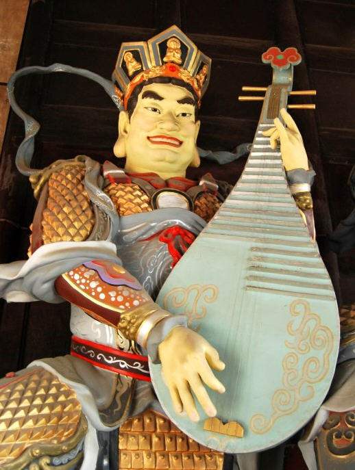 这位身穿甲胄,手持琵琶,慈悲为怀,保佑众生,护持国土的持国天王,要用音乐来使众生皈依佛教,只是不知有多少世人能听懂他弹奏的梵音。