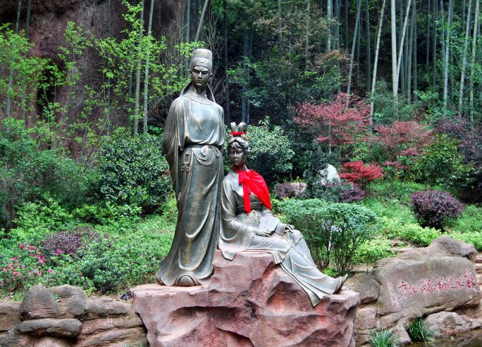 在翠微峰上,还有诺讵罗尊者石龛,依岩镂空凿成,从古至今,人称这座石龛为“开山祖师墓”,乃诺讵罗尊者与牛头寺主僧圆寂中岩后的“藏身塔”。石龛似为唐石室的造型,经明代重修,整个石龛及大小塔造型别致,雕刻精美。据说,诺讵那是唐代高僧,俗名罗尧远,四川省青神县人,佛教中的第五罗汉,被尊为中岩和雁荡的开山祖师。清齐召南《温州府志》:“雁荡山禅化祖师,姓罗氏名尧远,蜀之眉州青神县人。居中岩山,有三峰鼎立如笋,旁一峰如宝瓶,岩帕奇峭,林木森蔚,诺矩那道场也。……蜀之中岩,温之雁荡名重天下,自尊者始也。”下图是网络图片——诺讵罗尊者石龛。