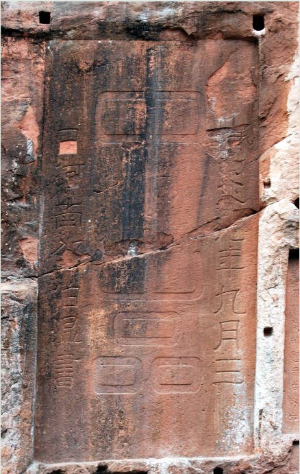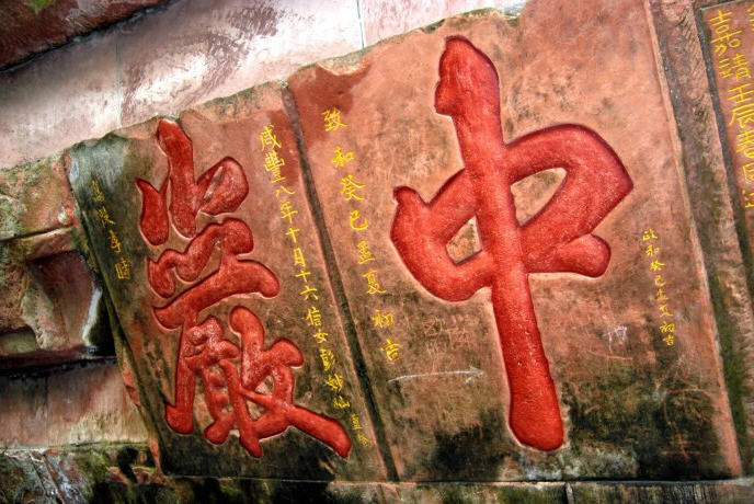这“中岩”二字乃南宋政和(1111年—1118年十月,是宋徽宗赵佶的年号)年间高陵李时题书,是书法佳品。据说,旁刻的“致和癸巳孟夏初吉”是“咸丰八年”(1858)信女彭妙仙重修时的误刻,因为“致和”无“癸已”,“政和”才有“癸已”纪年。
