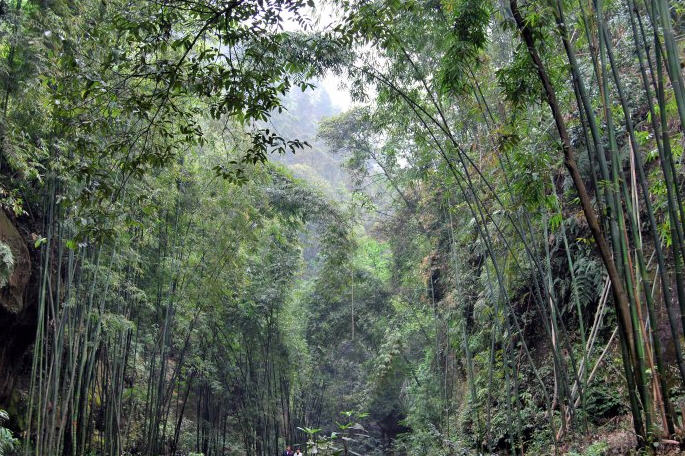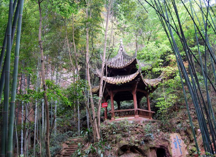 从石笋峰至唤鱼池,现在新修了一条2200多米的涧道。涧道蜿蜒曲折,迂回于溪流两侧。两旁青峰对峙,岩壑幽深。沿途竹树青翠,山花烂漫,流泉响石,小桥亭榭,融自然野幽之奇,独成一景。人行其间,唯“与造物游”。
