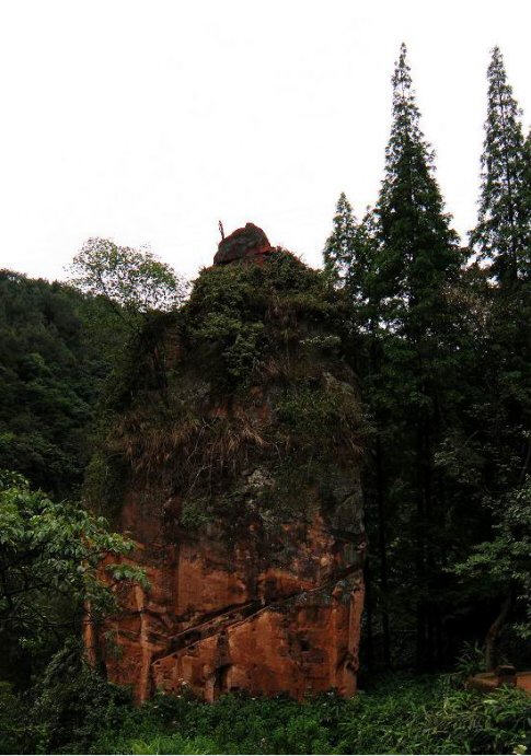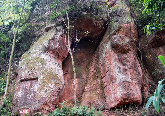 站在“古中岩”石笋峰的露天观景台,环顾四周,前是慈姥峰与玉泉岩、仙人床、卧佛窟,迤逦不断的苍壁丹岩;左是峡溪以西的丹梯峰峦横亘;右是宝瓶峰与东坡读书楼;后是诺讵罗尊者受享香火的开山祖师墓,所有灵岩胜景尽收眼底。