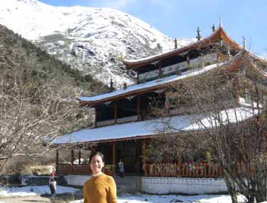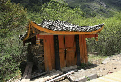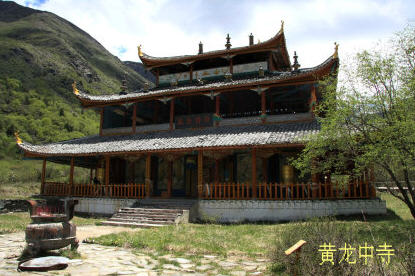 距沟口约3.5公里,有黄龙古寺可让游客休息。据《松潘县志》载:“黄龙寺,明兵马使马朝觐建,亦名雪山寺,相传黄龙真人养道于此,故名。有前中后寺,殿阁相望,各距五里。”