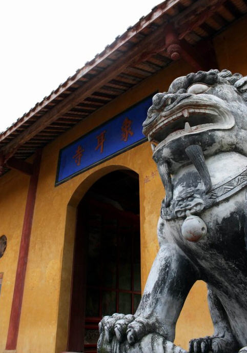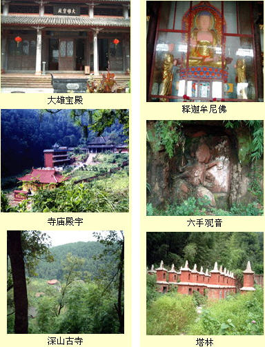 寺周环山,每当风扫晴岚,松摇滴翠,步行曲径,顿觉心灵为之净化。著名的象鼻山、象耳山、擦耳岩等拱卫寺前,植被繁密、风光清丽。山麓湖水一弯,波光潋滟,可供游人荡舟。