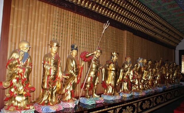 “马足车尘世路不知仃处尽,岩花涧月禅心应自此中生”,当你仰望这曹王禅寺巍巍牌楼时,一颗东瞻西顾的心,自然而然地被摄住了,脚步不由自主地迈上了曹王禅寺的三桥——同心桥、平安桥、福寿桥。步入寺庙,在你面前的将是守护神哼哈二将,高大威武地挺立在照壁两侧,一切妖魔鬼怪被镇住而止步,照壁的后面将是释迦世尊灵鹫布道的巨幅磁雕,将与大雄宝殿的《西方极乐胜景图》遥相呼应,信佛学佛的最终目的是求生西方,其间演绎着世尊四十九年说法的不朽故事。