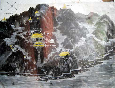 在丹棱县城南18公里的地方,有个杨场镇。杨场镇原名杨场乡,据说古称栅头镇,建于清宣统年间。杨场镇徐坝村金牛河畔有座山,因山有九峰延绵起伏,远看犹如卧龙汲水而得名九龙山。经过前几年的开发,现在的九龙山是省级森林公园。下图是九龙山竹林寺景区图。