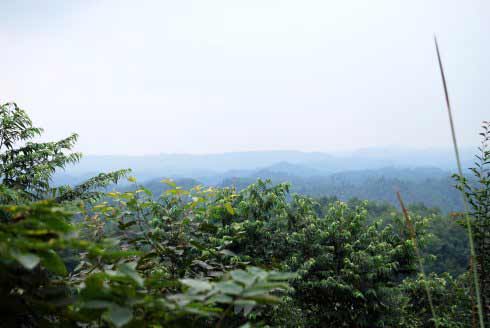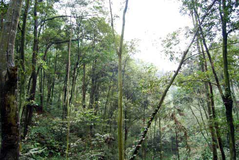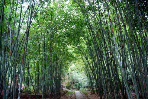 走上山脊,放眼四望,满目青翠。现在的九龙山森林公园,据说面积有380公顷。这里气候温和,光照充足,土地深厚肥沃,适宜多种动植物生长,公园内生长着马尾人工林、常绿阔叶林、翠竹林、古榕树,那些火红的杜鹃、烂漫的山茶、雪白的扁竹叶、千姿百态的蔷薇和兰草为豪猪、松鼠、杜鹃、啄木鸟、白鹭等野生动物提供了良好的栖身环境。