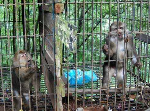 榕树下的铁笼里,饲养着两只猴子,一公一母,想来过着幸福的生活,只是可能缺少一些自由。