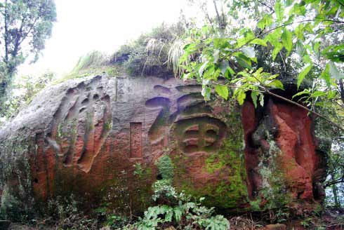 大雄宝殿后,是观音殿,殿右后方崖壁上,就是清代丹棱知县毛震寿题写的“竹林烟月”。