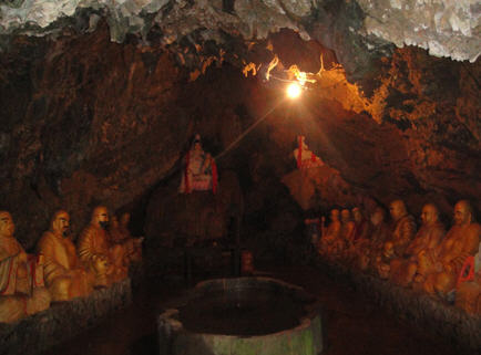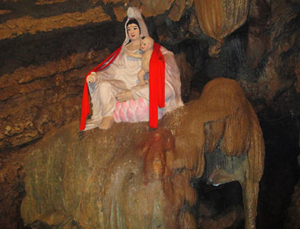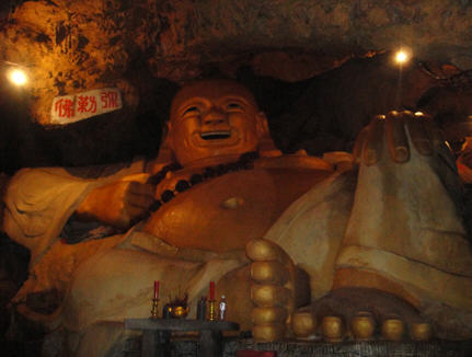 千佛洞洞深十余公里,现已开发近3公里,弥勒大佛将洞内景观一分为二,有上有天堂、下有地狱之称。千佛洞因洞内然佛像和半天然佛像较多而得名,众多的佛像和天然雕塑的奇岩异石,使千佛洞显得更加壮观,魅力非凡。