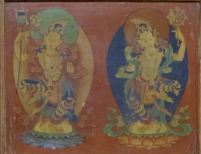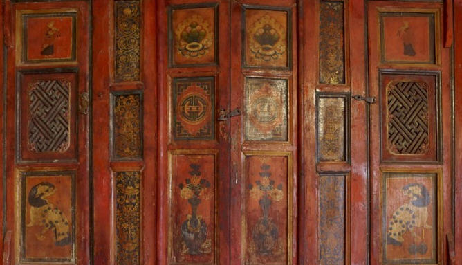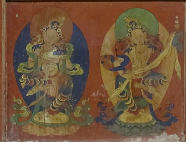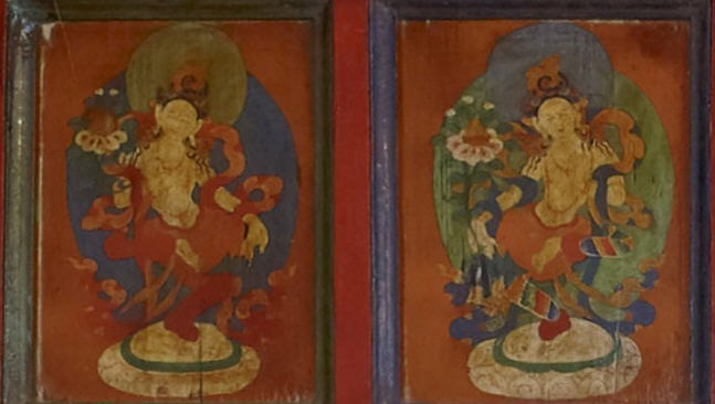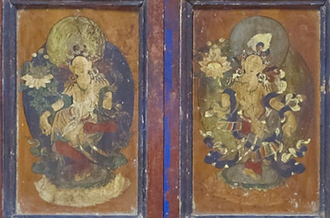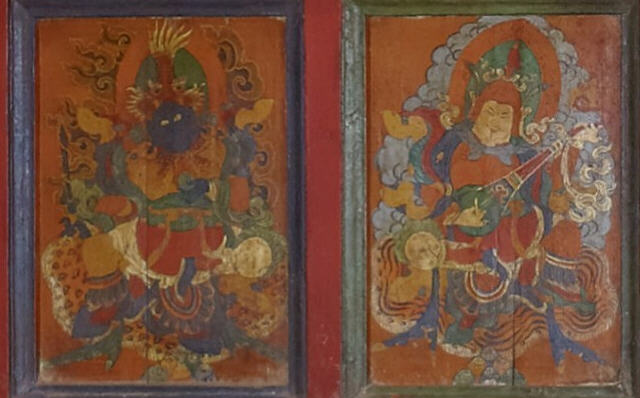 藏汉两地风格,略有差异,藏地比较多以彩绘为主,天龙、天女,或护法形象为主要绘画主题,有着鲜明的藏传佛教文化特色。