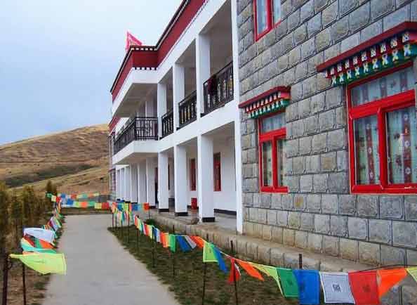 现在的寺院在原址基础上修建而成,有高达六层的寺院主楼、四栋僧侣宿舍楼、寺院宾馆和游人接待室等。寺院主楼一楼为大经堂、二楼为讲经堂、三楼为藏经楼、四楼为多媒体电教室、五楼为金佛殿、六楼为陈列馆,楼顶为金顶。寺院地处海拔3300米,地势开阔,环境优美,有雪山、高山草甸、原始森林,有诗曰:春之圣山杜鹃艳,夏之圣山绿地毯,秋之圣山彩林灿,冬之圣山结佛缘。非常贴切而生动地描述和赞美了昌列圣山各个季节的景色。