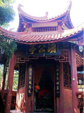 天王殿后为济公亭,济公亭为六面形的重檐式砖木结构建筑,高二丈,四周建飞檐坐椅,供济公立像。