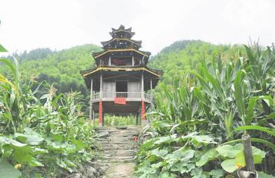 目前还存有两幢木房,用来供奉神灵,同时也供前来烧香拜佛的信男善女提供休息的场所,成为过路香客补充水等物资的场所。另外,村民同样通过“挂公果”的形式,修建了5层木质楼阁,造型别致,别有一番风味,用来供奉“玉皇大帝”等神灵。