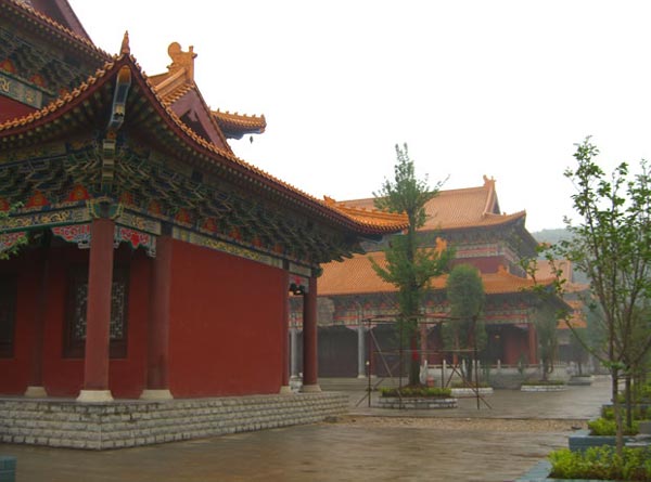 异地重建寺院,建筑的定位、内涵、风格等方面都发生了变化,同时为提高寺院的知名度,充分考虑寺院今后的管理和发展,有关专家认为在西南的贵州修建一座与浙江舟山东普陀寺、厦门南普陀寺和长春北普陀寺齐名的观世音菩萨道场具有十分重要的意义,后报经省市有关部门同意,更名为“西普陀寺”。西普陀寺的设计修建,严格按照中国古典寺院建筑的传统布局与风格,融合传统的建筑艺术、园林艺术与佛教文化,充分体现出独特的建筑艺术和深刻的宗教内涵。寺院坐北朝南,前有宽阔的广场和18龙柱,后有依山而造的天然佛像。中轴线上主建牌坊、照壁、天王殿、大悲宝殿、大雄宝殿、藏经楼,左右两侧建有钟楼、鼓楼、药师殿、接引殿、禅堂、僧房、佛学院、方丈院、贵宾楼、书院、上客堂、斋堂、素斋楼等。